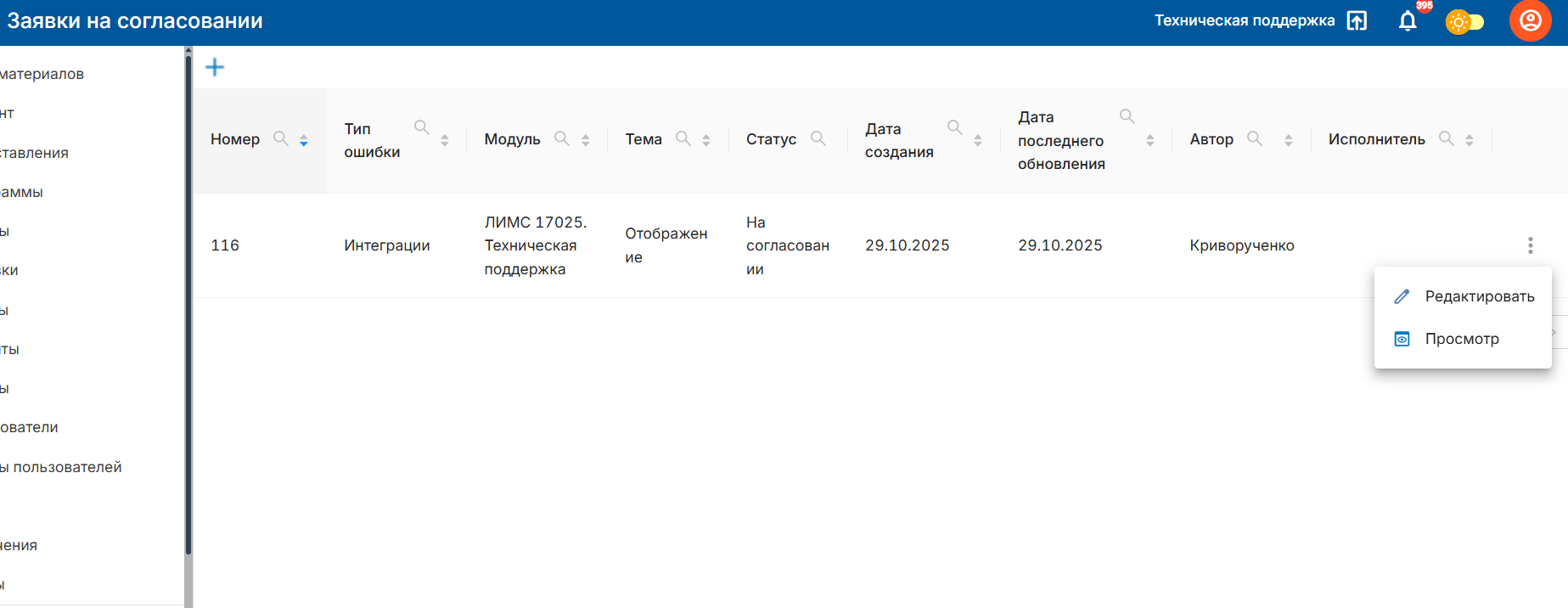 2. Заявки на согласовании — обращения, переданные администратору для проверки и утверждения. Используется для быстрого доступа к заявкам, где требуется решение руководства.