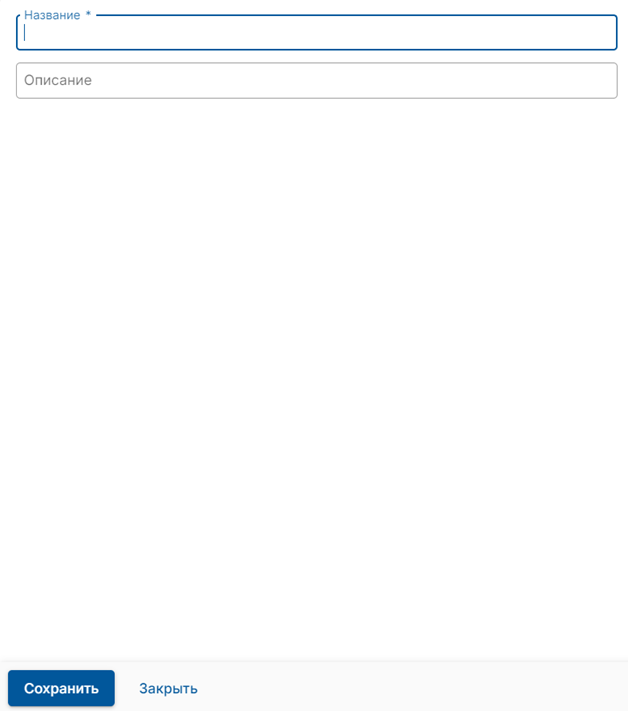 В открывшейся форме пользователь заполняет поле «Наименование», после чего нажимает кнопку «Сохранить» в левом нижнем углу.